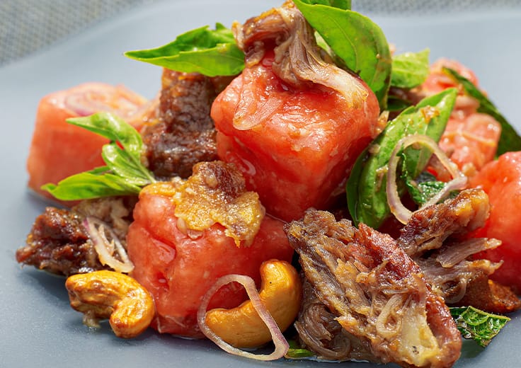 Duck and Watermelon Salad at Red Ginger on board Oceania Cruises